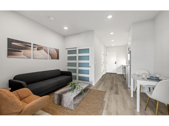 The Parkline offers a curated mix of studio, junior one-bedroom and one-bedroom apartment homes, each designed with modern living in mind. Luxurious vinyl flooring, clean architectural lines and efficient, thoughtful layouts create spaces that are both stylish and functional. Residents enjoy access to a fully equipped fitness center, underground parking, a spacious community room and a rooftop deck with sweeping views of Downtown LA, the San Gabriel Mountains and Dodger Stadium.