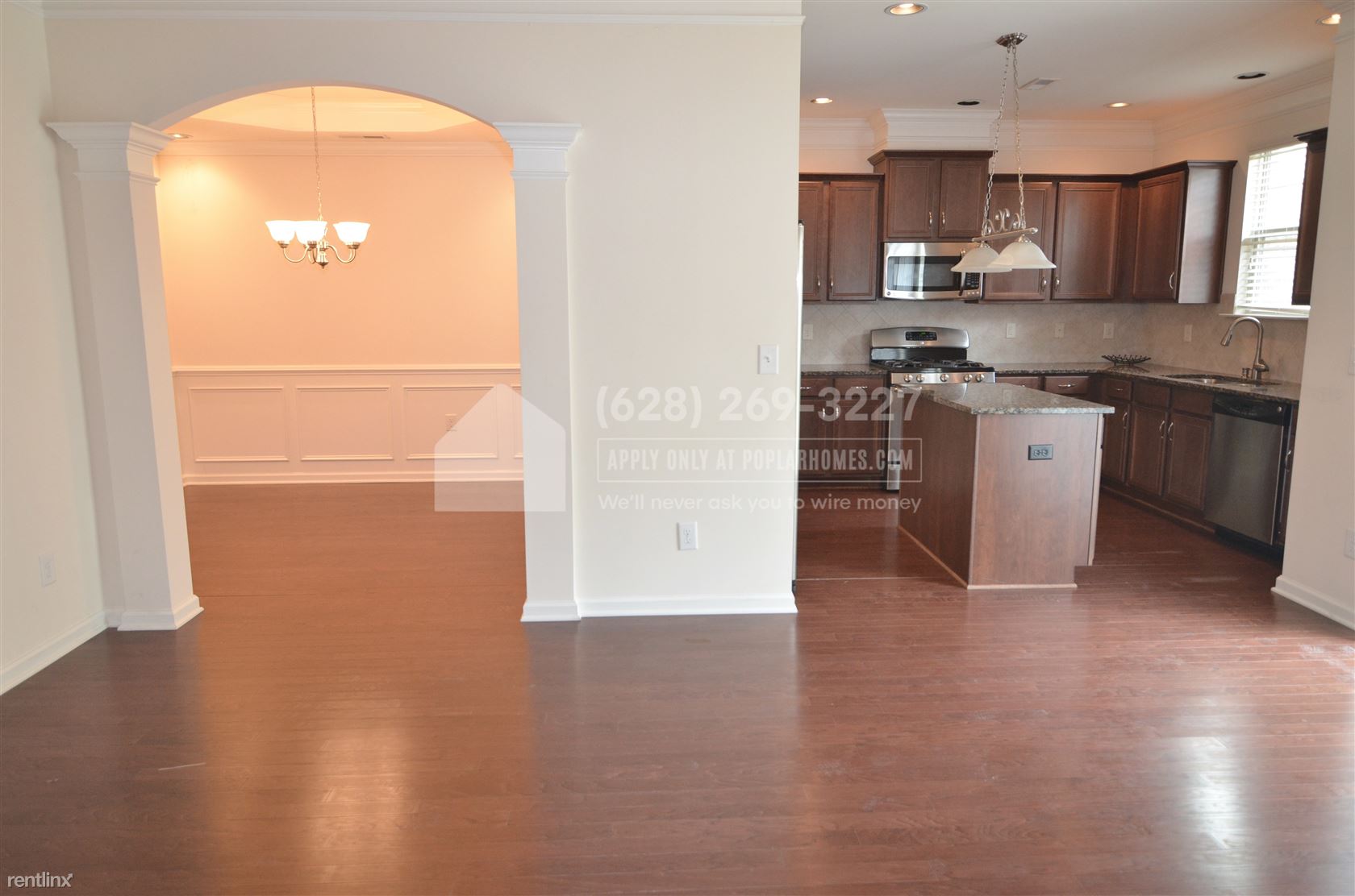 Gorgeous townhome with lots of upgrades! Convenient Morrisville location. Beautiful wood floors, archways & tray ceilings. Granite, stainless appliances, island, pantry & gas stove in kitchen. Gas fireplace in room living room. Large master suite with a walk-in closet plus separate closet, dual sinks, garden tub &separate shower. 2 car attached garage. Close to shopping & restaurants. Easy access to 540, 147 and 40. 1 small-medium dog permitted $30 pet fee.