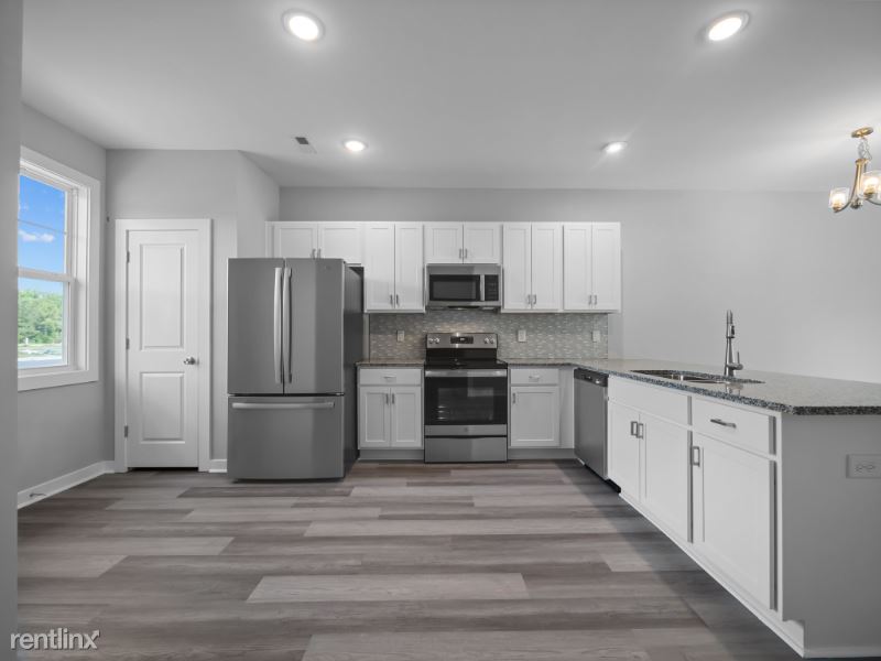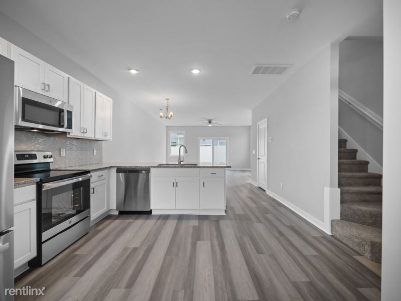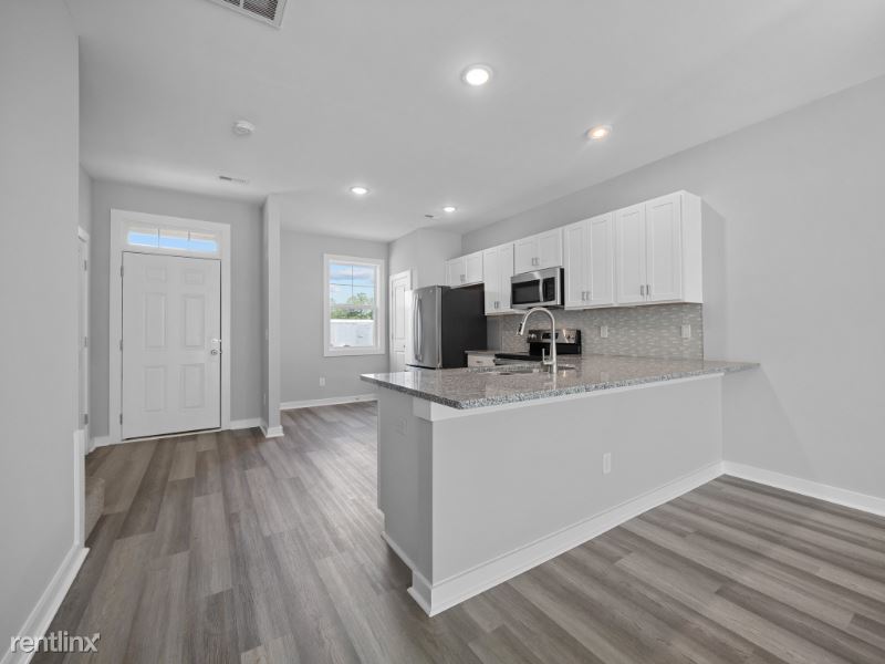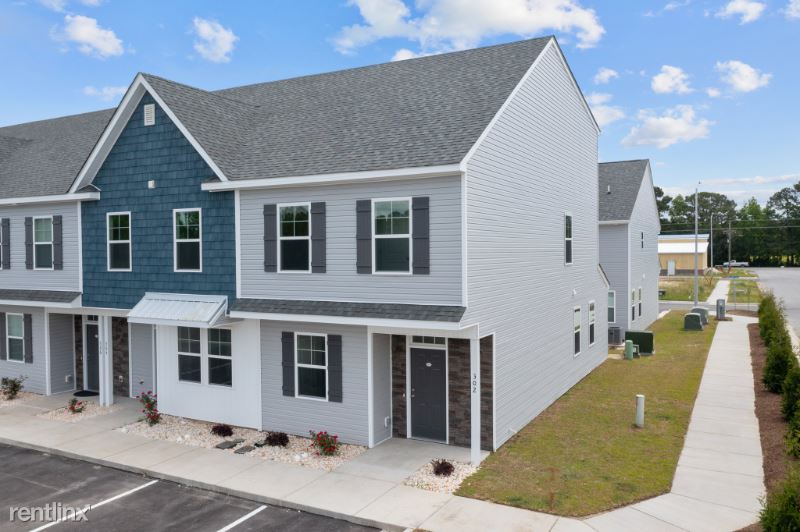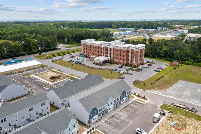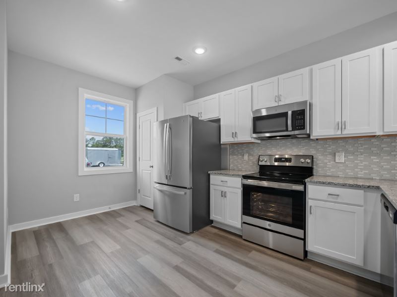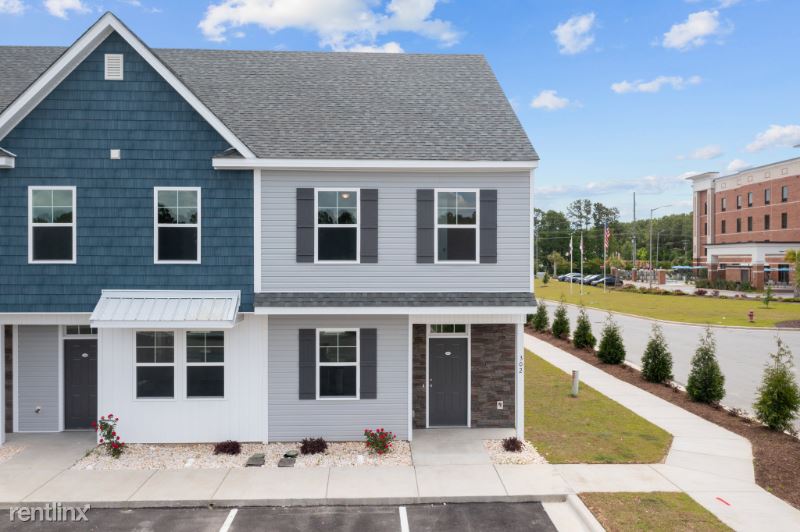 MOVE IN READY!! BRANDNEW 2023 built *END UNIT* spacious 3-story townhouse with 3 beds and 3.5 baths welcomes you with fresh paints and LVP flooring downstairs and new carpet upstairs. The kitchen features granite countertops, modern backsplash tiles, and stainless steel appliances (refrigerator, gas range, dishwasher and microwave) and breakfast bar. You will find 1/2 bathroom on this level as well as the sliding door to the backyard. There are full bathrooms and walk-in closets on each level of this townhouse and lots of natural light throughout the house. This townhouse is part of the 100 townhome complex with a community pool and clubhouse. Just minutes from many great restaurants, and approximately 2 miles to the beach. This new townhome development is conveniently located close to the back gate of Camp Lejeune, MARSOC, groceries, restaurants, and shopping. Commercial space in front of the community will offer mailing services and restaurants.