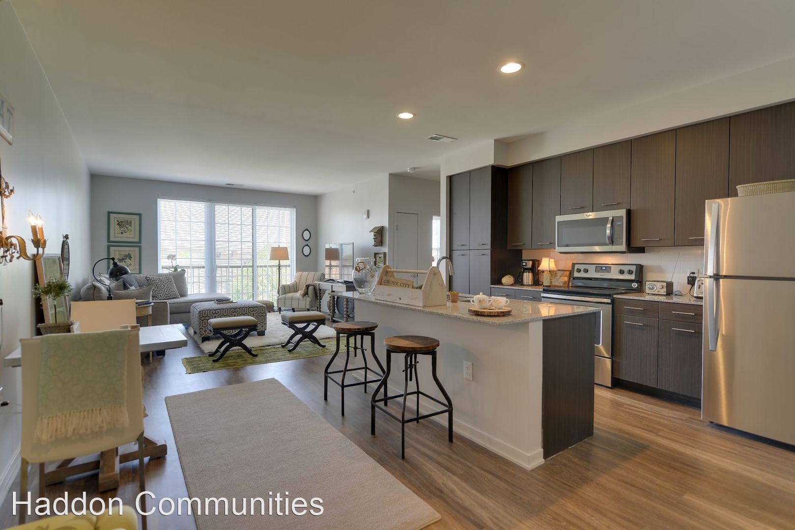 Breck II - 1BR - Prepare to be captivated by historic Grove City and its premier apartment community, Broadway Station. Located in the heart of Grove City’s historic Town Center at Park St. and Broadway, Broadway Station is minutes from city gems like Plank’s Saloon and Restaurant, Hop Yard 62: Grove City’s own home for craft beers, The Little Theatre Off Broadway, Grove City Public Library and the City Administration Building. Not only does Broadway Station have a prime location with amazing views we also have the lifestyle you deserve. Our apartment residences feature 10 uniquely designed suites with your comfort and convenience in mind. Each floor plan has open living space with hard wood flooring, carpeted bedrooms, spacious walk in closets and over-sized windows, (9’ ceilings, patio, balcony and private entry in select residences). Kitchens include granite counter tops with ceramic tile backsplash and a center island area for dining or entertaining. Appliances are Whirlpool with a stainless steel finish, and full-sized washers and dryers are provided as well. Baths feature Metro 12”x 24” Porcelain Floor Tile, Walk-in Showers with contemporary bath fixtures. Broadway Station Clubhouse offers the convenience of a secured key-fob entry fitness center, private Yoga/Barre room with an instructor, billiards, a bar and an inviting gathering space. The courtyard will keep you entertained with a Bocce Ball court, grills, fire-pit, pergolas and picnic area. We also provide an individualized secured property-wide High Speed Internet WiFi Connection that can be accessed anywhere on site. AMPLE on-site Surface Parking is provided for our residents and their guests. Captivate your elevated lifestyle at Broadway Station, stop looking and start living!