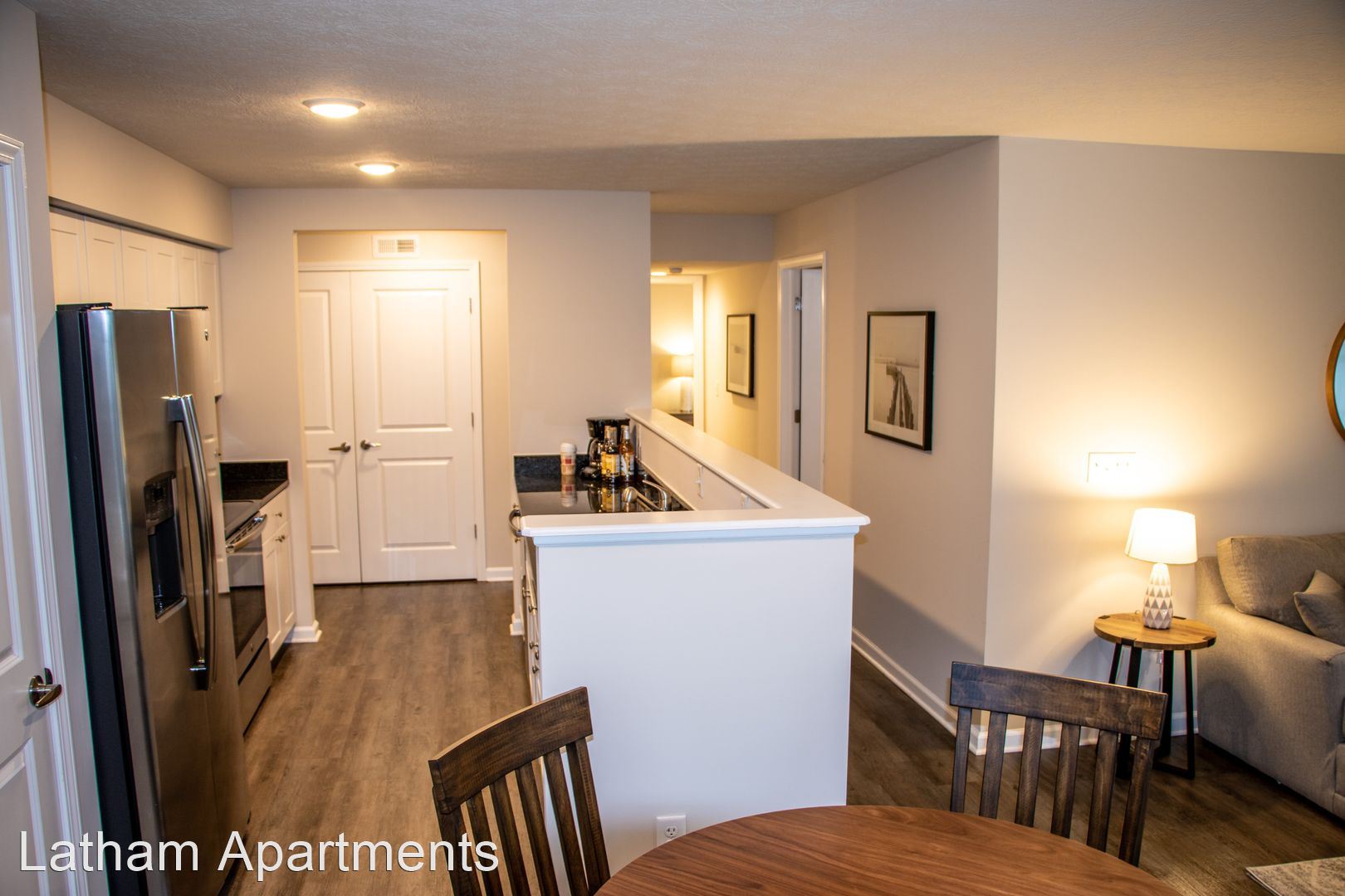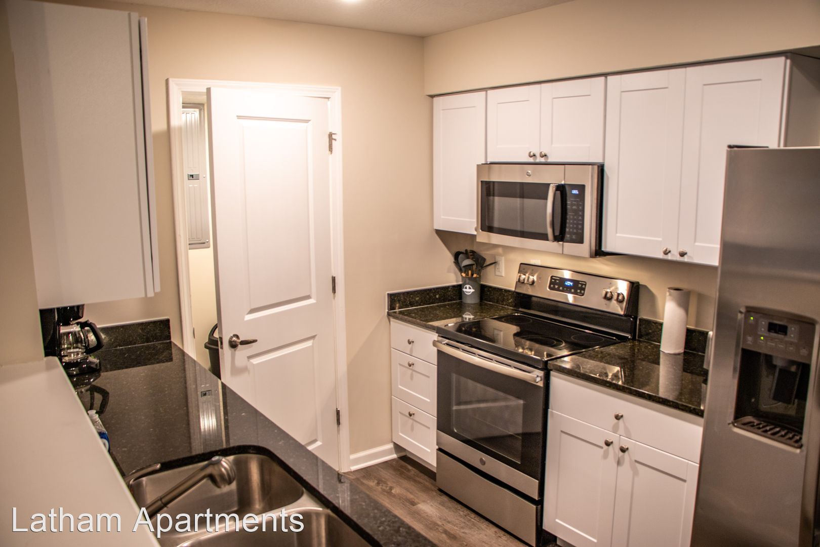 - Open kitchen, stainless steel appliances, granite countertops, and a full size pantry.